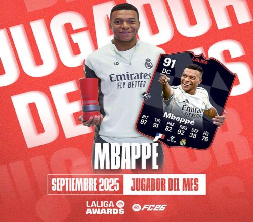 姆巴佩當(dāng)選西甲聯(lián)賽的9月最佳球員,該獎項由西甲聯(lián)盟與EA合作頒發(fā)。這位法國前鋒本月表現(xiàn)驚艷,已成為皇家馬德里進攻端的關(guān)鍵人物,他幫助球隊在本賽季目前進行的7場比賽中取得6場勝利。