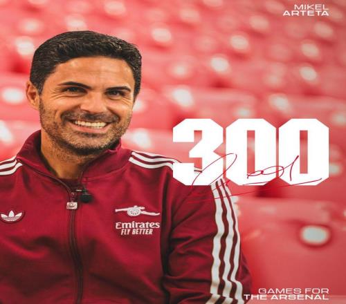 本場比賽,也是阿森納主帥阿爾特塔執(zhí)教球隊的第300場比賽。