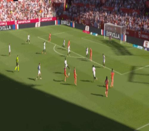 如果說桑切斯主罰點球、12碼線破門只是一個意外情況,那么孔德在中場丟球之后、塞維利亞打出的快速反擊,堪稱是徹底擊潰了巴薩的整個防守。從中路分到左路,再回到右邊路的后套上擊敗門將,羅梅羅的速度以及隊友給球的準星完美,巴塞羅那在高位壓上之后根本回不來,不管是中后衛(wèi)的回防速度、還是后腰的保護力度都遠遠不夠,因此丟球是必然的。