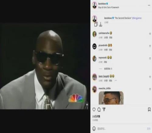 作為詹姆斯的多年好友和前隊(duì)友,每次碰面都要大力擁抱詹姆斯的樂(lè)福則拿出一張喬丹于2003年在奇才舉行退役儀式的視頻,開(kāi)玩笑寫(xiě)了“決定二”。