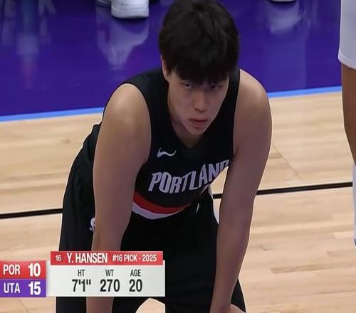 第二節(jié),開拓者開局階段啟用五小陣容,一度甩開爵士10分優(yōu)勢,又是打了4分鐘,楊瀚森再度登場,結果一上來2次犯規(guī),都是搶籃板犯規(guī),先是一巴掌拍到對方臉上,后是背后推人,半場結束時,開拓者64-60領先爵士4分。