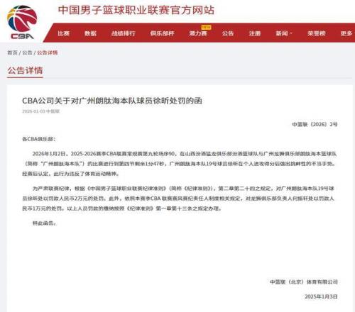 賽后,徐昕的這一挑釁行為,也是備受外界矚目,紛紛猜測(cè),徐昕會(huì)遲到罰單的。果不其然,在1月3日深夜,這張罰單真的來了。從CBA官方信息來看,CBA公司認(rèn)定徐昕在個(gè)人進(jìn)攻得分后做出挑釁性的不當(dāng)手勢(shì),此行為違反了體育運(yùn)動(dòng)精神,決定對(duì)其處以人民幣2萬(wàn)元的罰款。