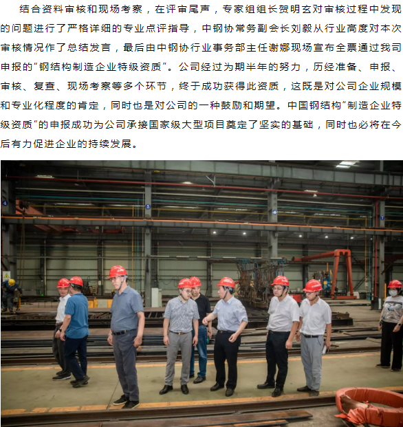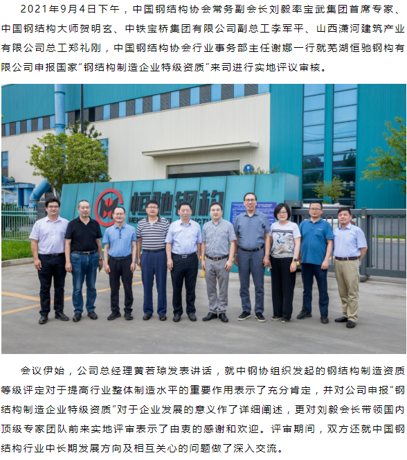 蕪湖恒馳鋼構(gòu)有限公司申報 “鋼結(jié)構(gòu)制造企業(yè)特級資質(zhì)”喜獲通過