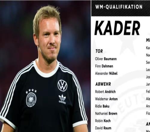 本周四,納格爾斯曼公布最新一期德國(guó)隊(duì)大名單,中衛(wèi)施洛特貝克回歸。德國(guó)隊(duì)將在10月國(guó)際比賽日對(duì)陣盧森堡、北愛(ài)爾蘭。納格爾斯曼說(shuō)道:“兩場(chǎng)勝利——這是明確的目標(biāo),以繼續(xù)直接晉